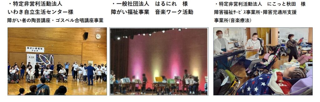 | 一般社団法人 はるにれ | 福岡県 | 障がい福祉事業 音楽ワーク活動 | 300 |