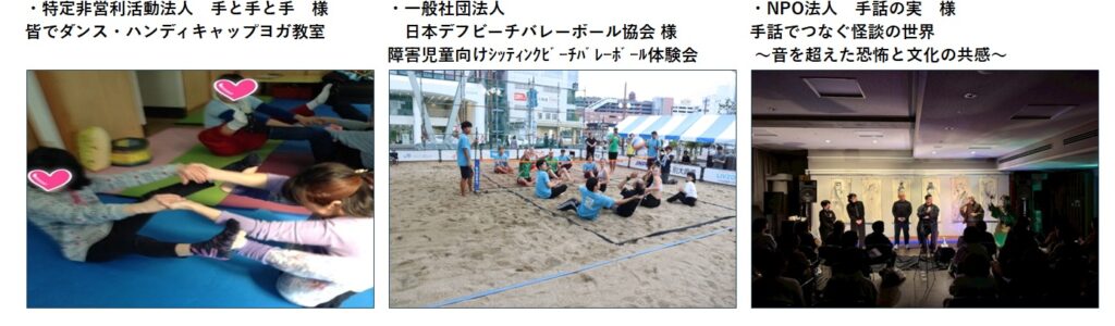 | NPO法人つなぐ | 神奈川県 | 障がい者が地域社会で自分らしく楽しむイベントの開催 | 300 |
