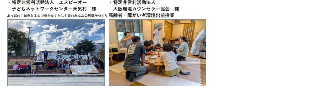 | 特定非営利活動法人 大阪環境カウンセラー協会 | 大阪府 | 高齢者・障がい者環境出前授業 | 300 |